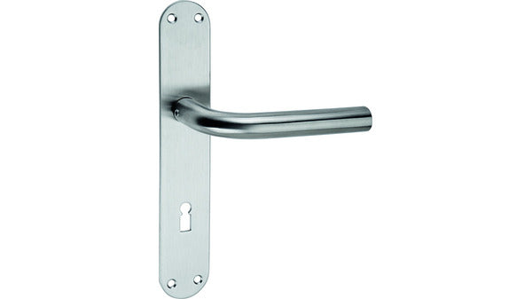 Garnitur bestehend aus: 1 Drückerlochteil festdrehbar montiert auf Schild, 1 Drückerlochteil und 1 Schild lose, mit Verbindungsstift, mit Befestigungsschrauben