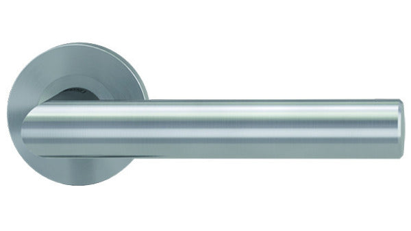 Drückerpaar festdrehbar gelagert auf zweiteiliger Rosette mit integrierter Hochhaltefeder, Drückerrosetten 53/8 mm, Verbindungsstift und Befestigungsmaterial ohne Schlüsselrosette