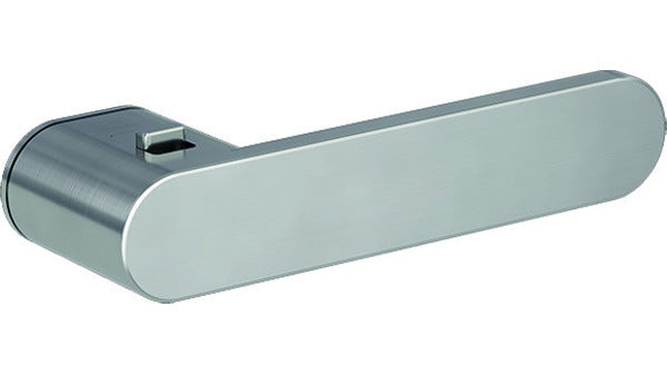 mit integrierter Verriegelungsfunktion Garnitur bestehend aus: Drückerpaar festdrehbar gelagert auf verdeckter Rosette mit integrierter Hochhaltefeder, im Griff integrierte einseitige Verriegelungsmechanik mit Notentriegelung, Verbindungsstift und Befestigungsmaterial