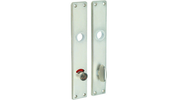 Garnitur für 1 Türe bestehend aus: 1 Aussenschild mit Sichtscheibe rot/grün 1 Innenschild mit Riegelolive und 4-kant-Stift 7 mm, festdrehbar Türstärke bis 40 mm